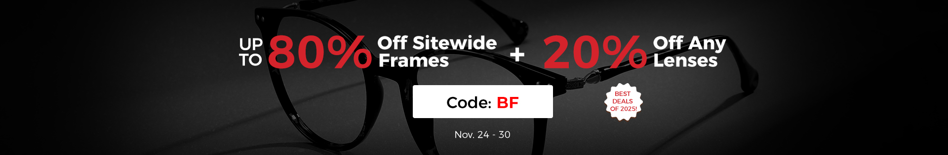 Redeem code "BF" at checkout to save extra 20% on lenses.